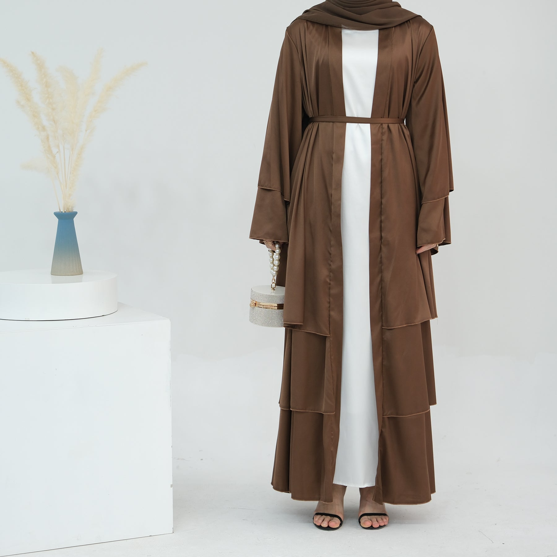 Liyana Layered Satin Open Abaya – CoffeeRated 5.00 out of 5