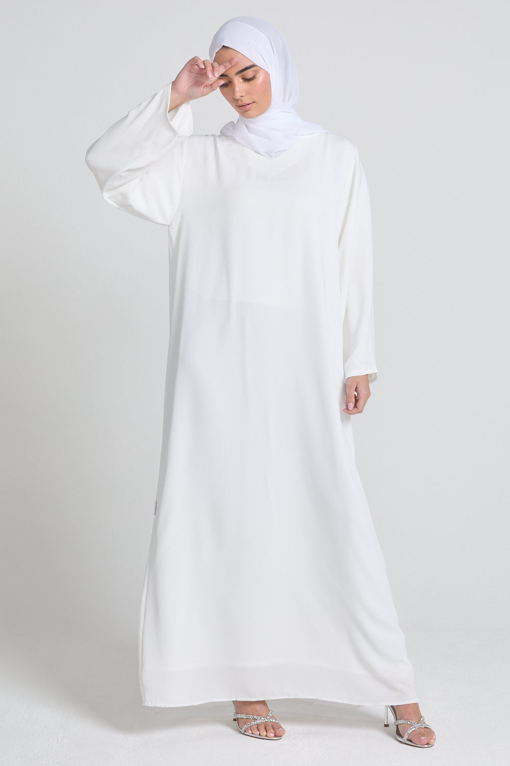 ₹2,999.00Original price was: ₹2,999.00.₹1,399.00Current price is: ₹1,399.00.Stay chic and comfortable with our Premium Nidha Inner Slip Dress in a versatile white hue. Designed to be worn effortlessly under your abaya, this elegant piece features a soft, lightweight lining to ensure modest coverage without compromising on breathability.