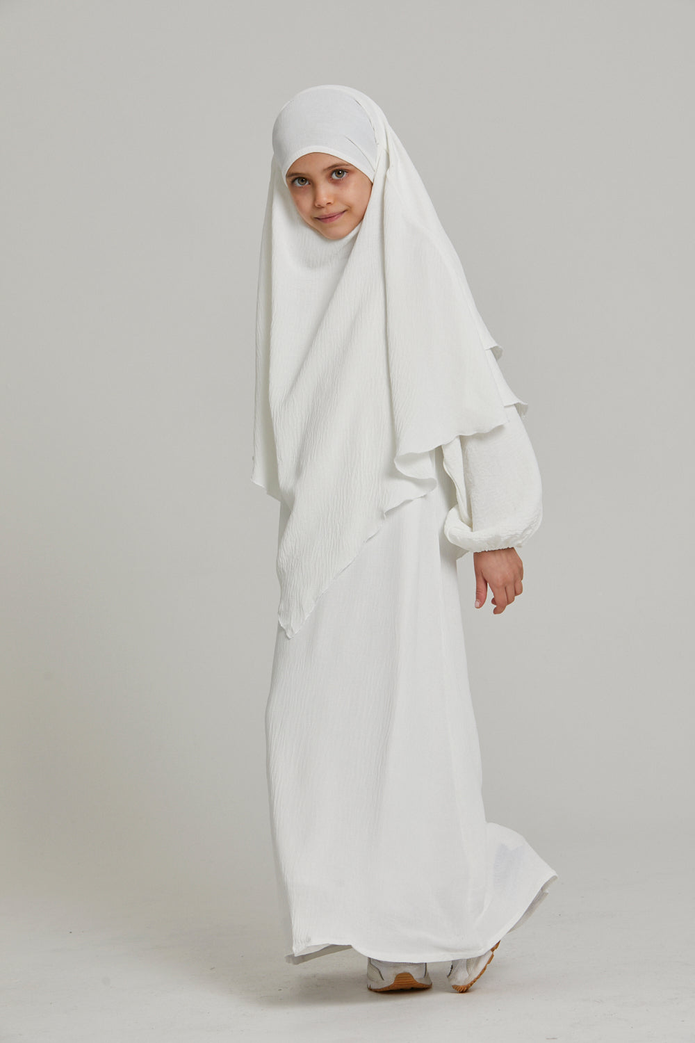 Junior Girls Abaya with Khimar Set – White