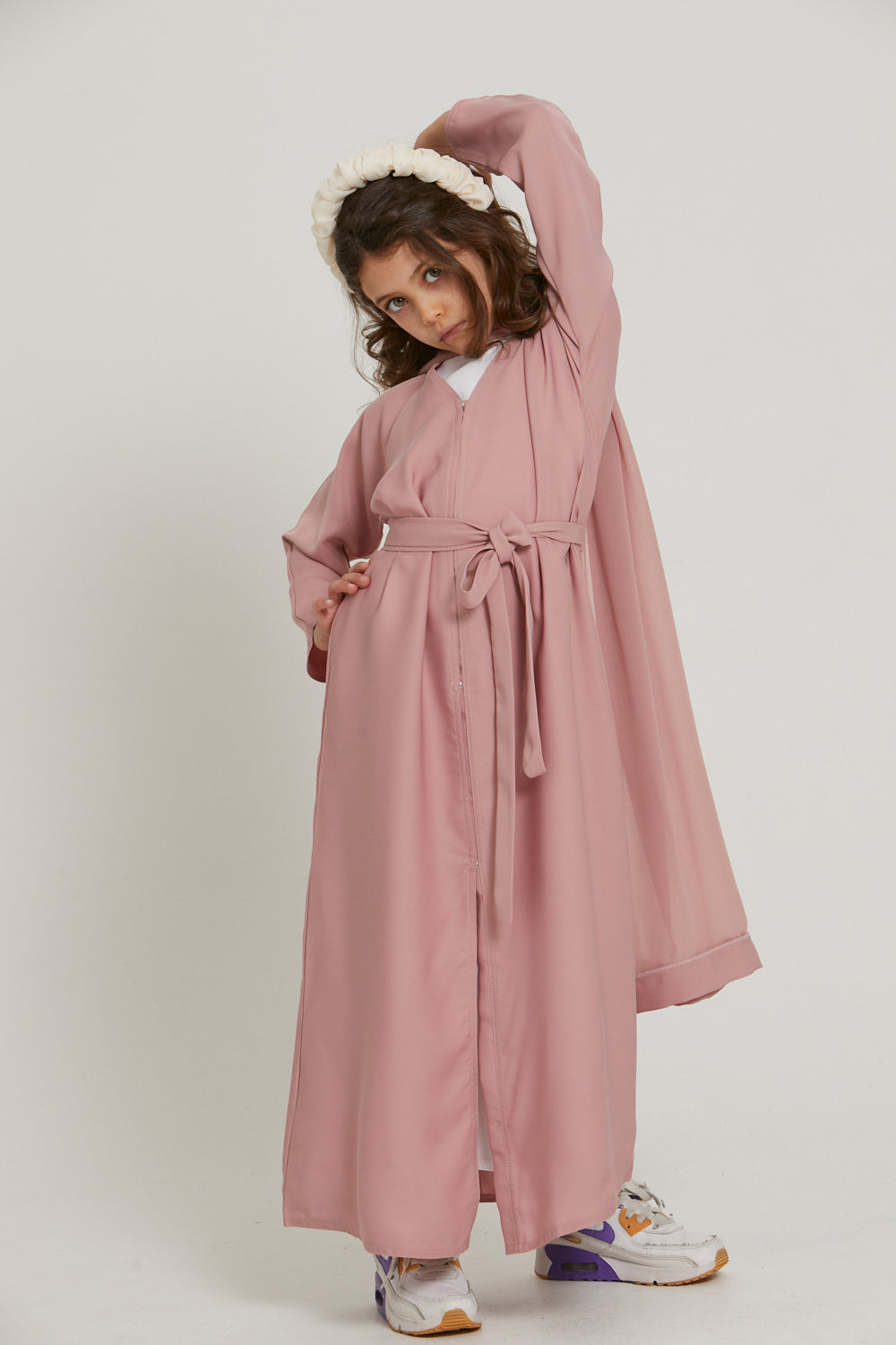 ₹2,500.00Original price was: ₹2,500.00.₹1,250.00Current price is: ₹1,250.00.This versatile Girls’ Open Abaya is made from premium, soft fabric and includes a matching hijab and belt. Features stud fasteners to wear it open as a cardigan or closed as a full abaya.