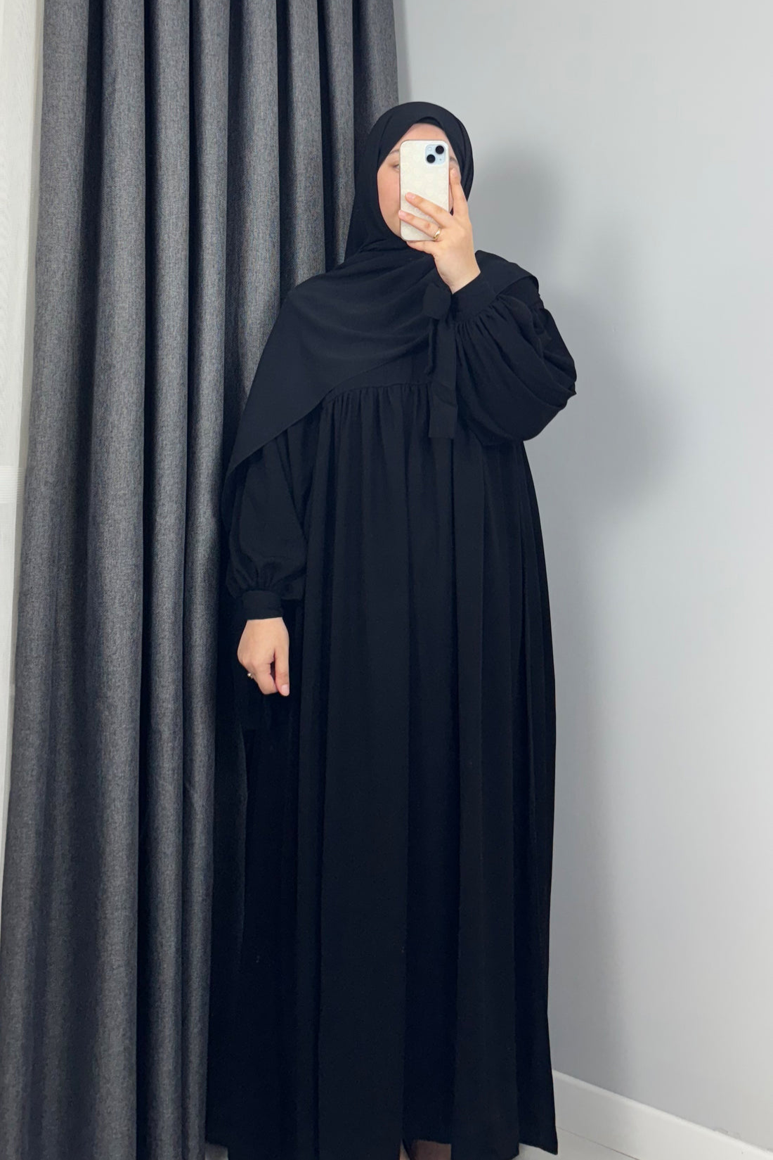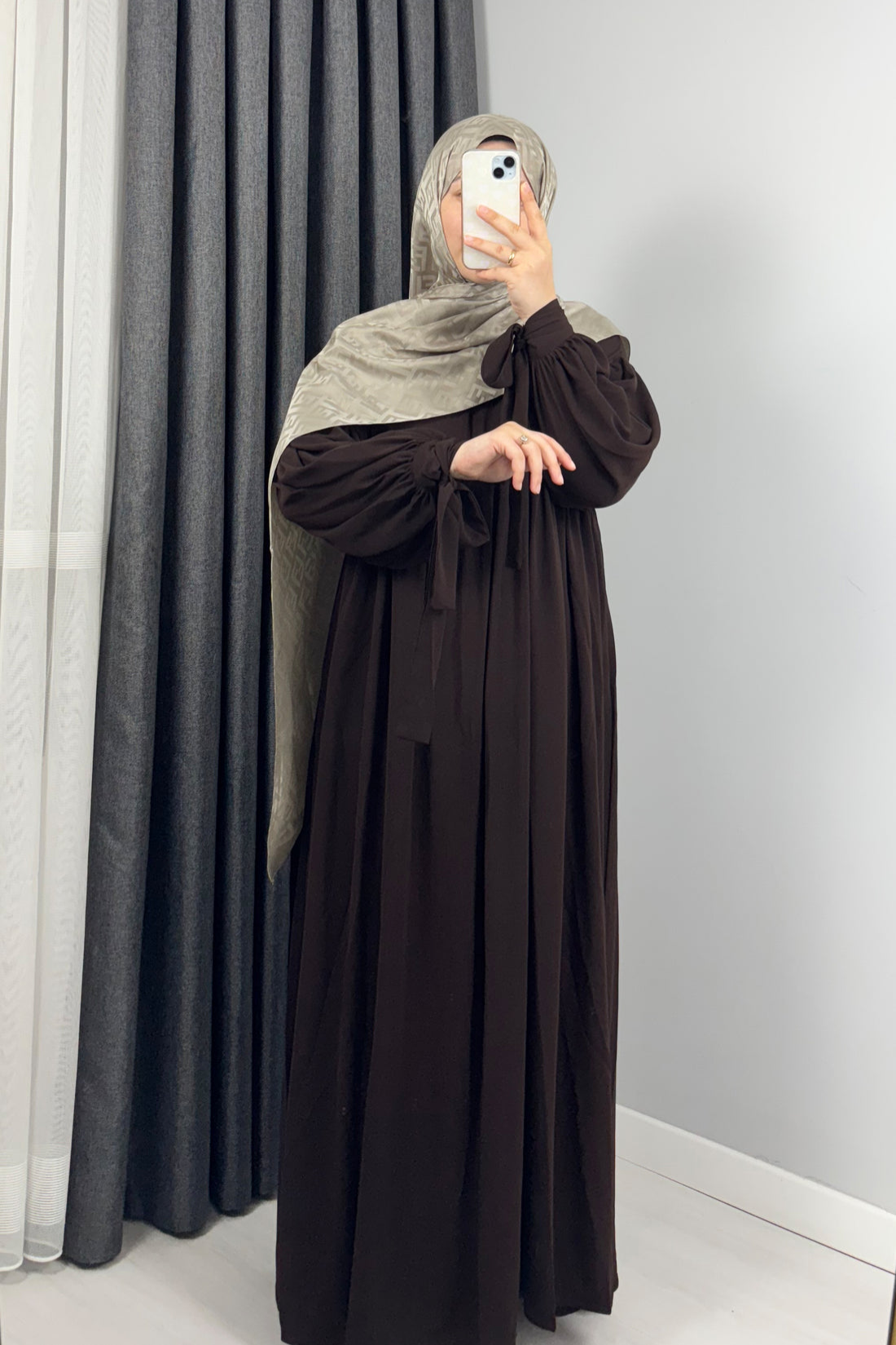 ₹1,499.00Original price was: ₹1,499.00.₹1,299.00Current price is: ₹1,299.00.A soft, elegant abaya featuring unique tied sleeves and a flowing silhouette—perfect for timeless, everyday elegance.