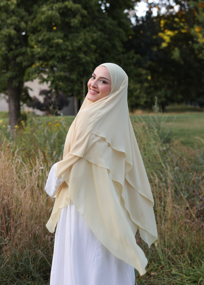 The Three-Layer Chiffon Khimar in Butter Yellow