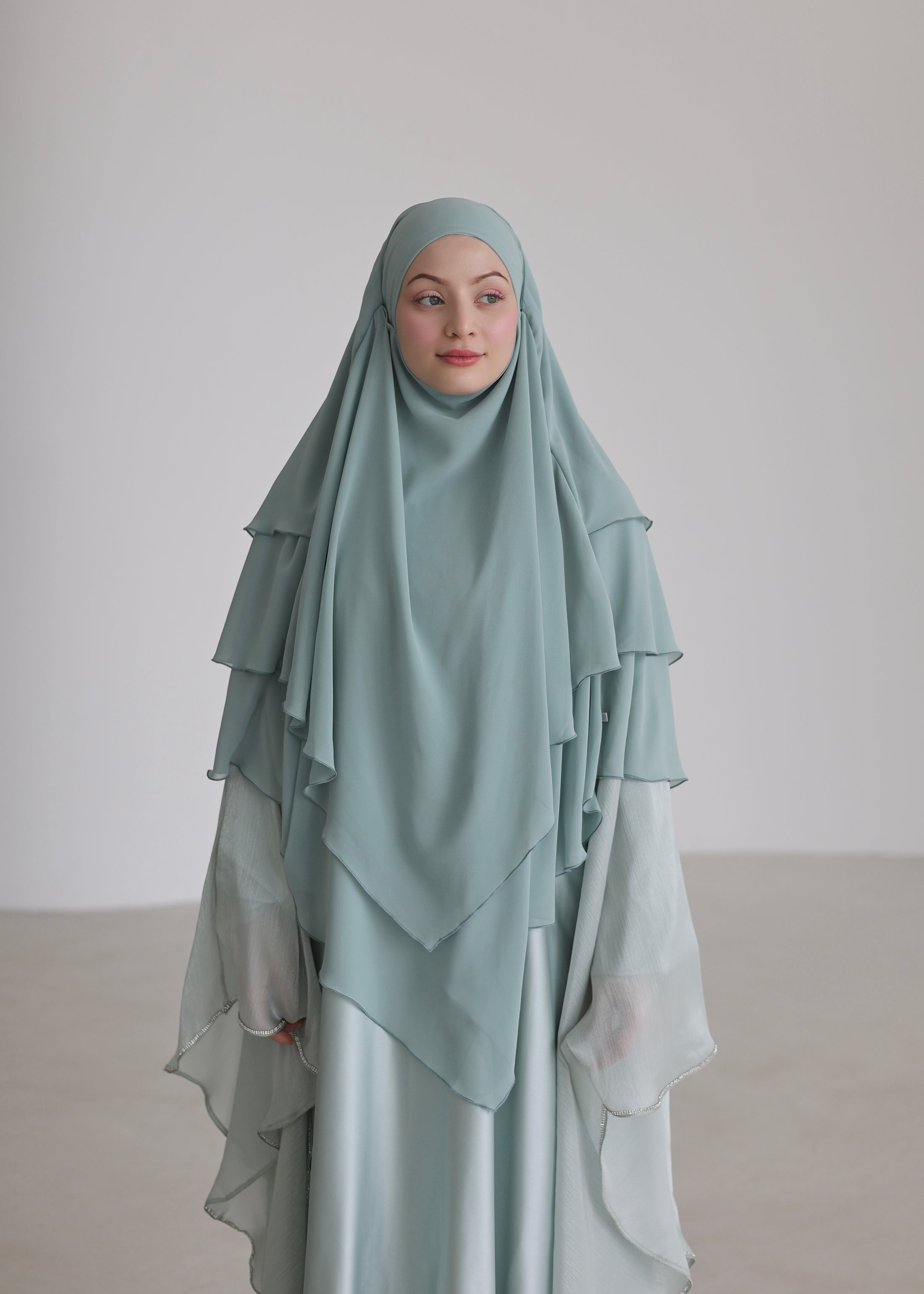 The Three-Layer Chiffon Khimar in mint