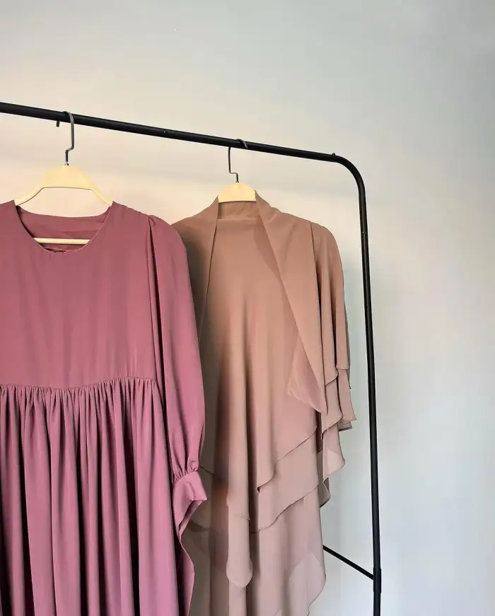 ₹2,999.00Original price was: ₹2,999.00.₹1,999.00Current price is: ₹1,999.00.An effortless Two-Piece Khimar Set in soft viscose fabric, featuring an abaya with cuffed sleeves and a khimar with a niqab feature and tie-back strings for easy, elegant, all-day modesty.