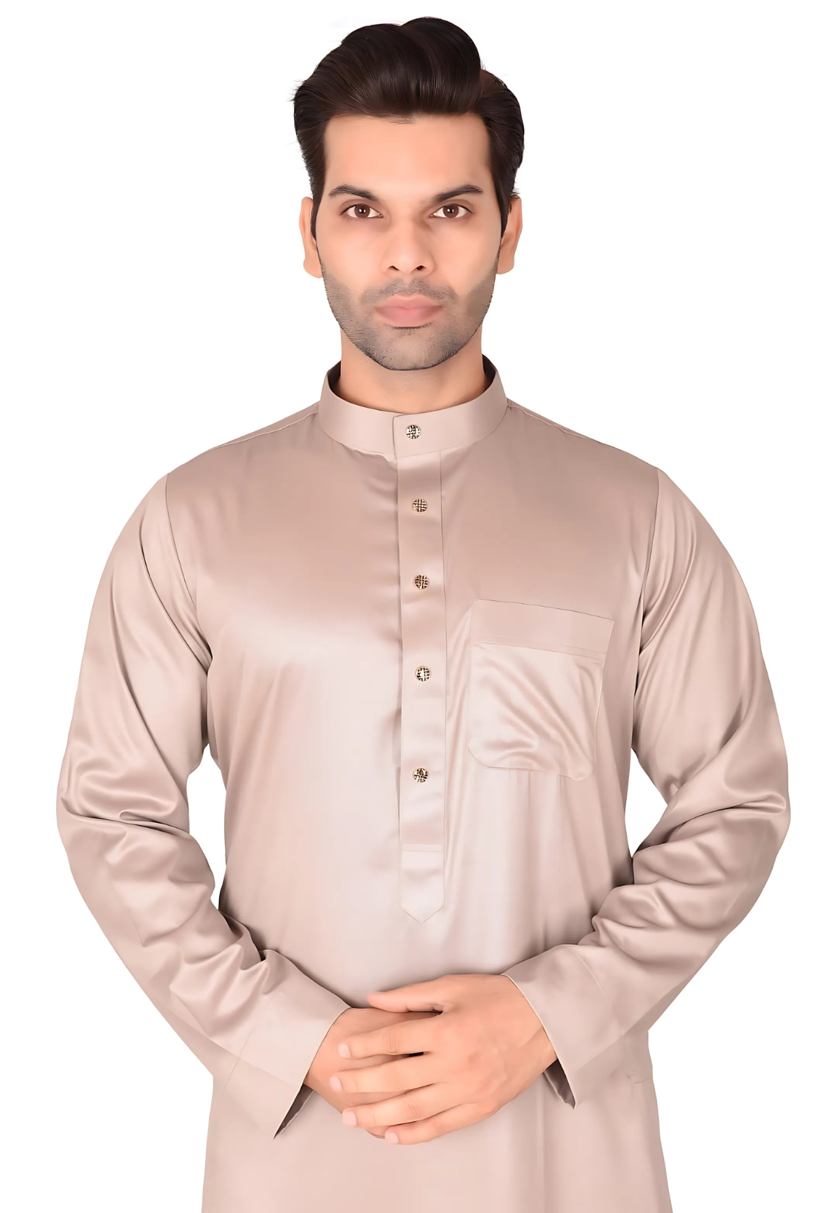 The Premium Classic Buttoned Thobe – Khaki Olive is where sophisticated design meets superior comfort.