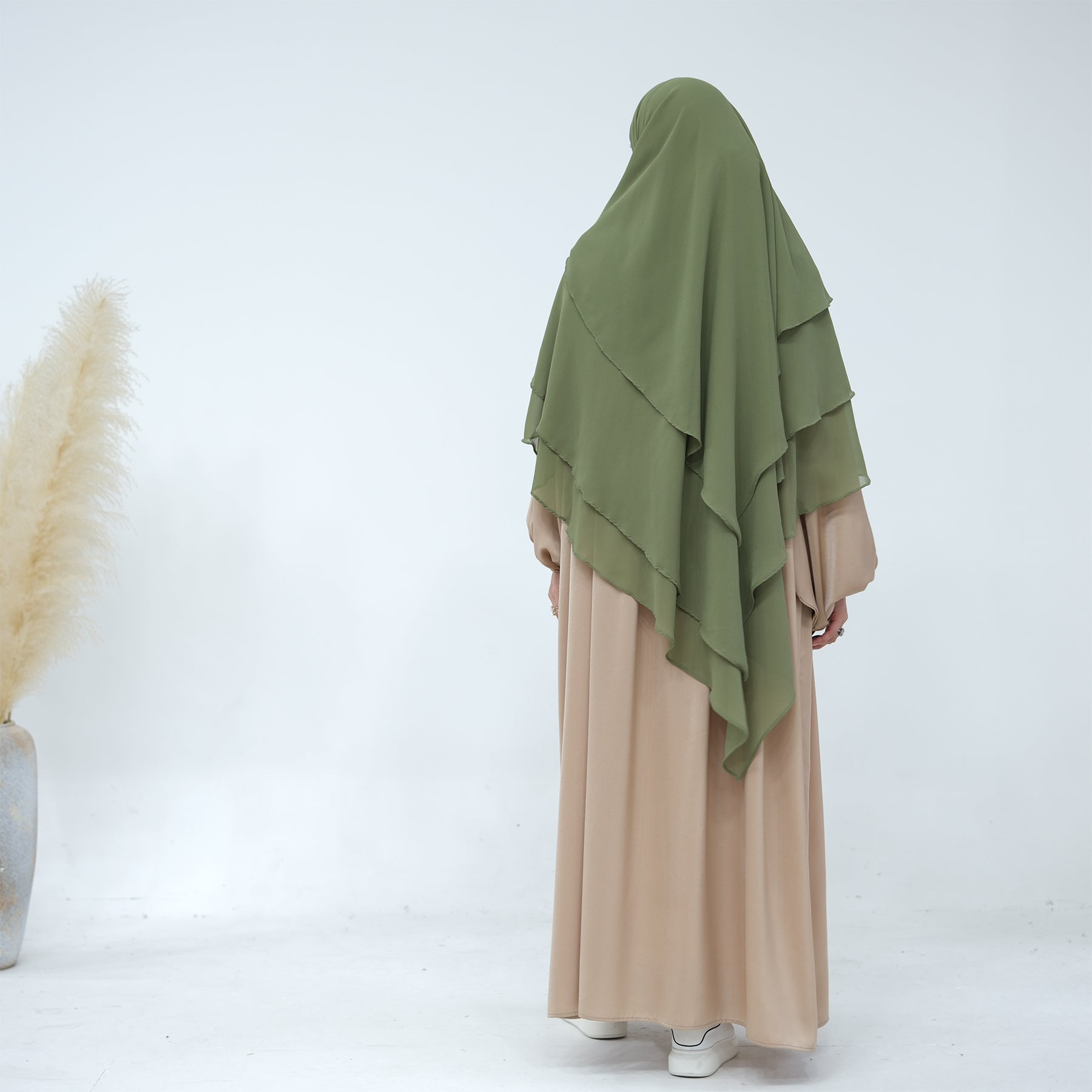 Feel feminine and modest with this luxurious Chiffon 3-layer Khimar.