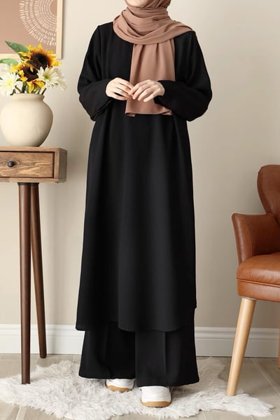 The Modest Essential Coord Set is your go-to outfit for timeless simplicity and all-day comfort. Designed with a relaxed silhouette, this two-piece set features a modest top and matching wide-leg skirt or pants – made from premium, breathable fabric that flows gracefully with every step.