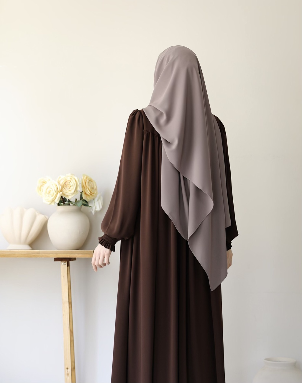 Add subtle sophistication to your modest wardrobe with the Elara Everyday Abaya – Coffee.