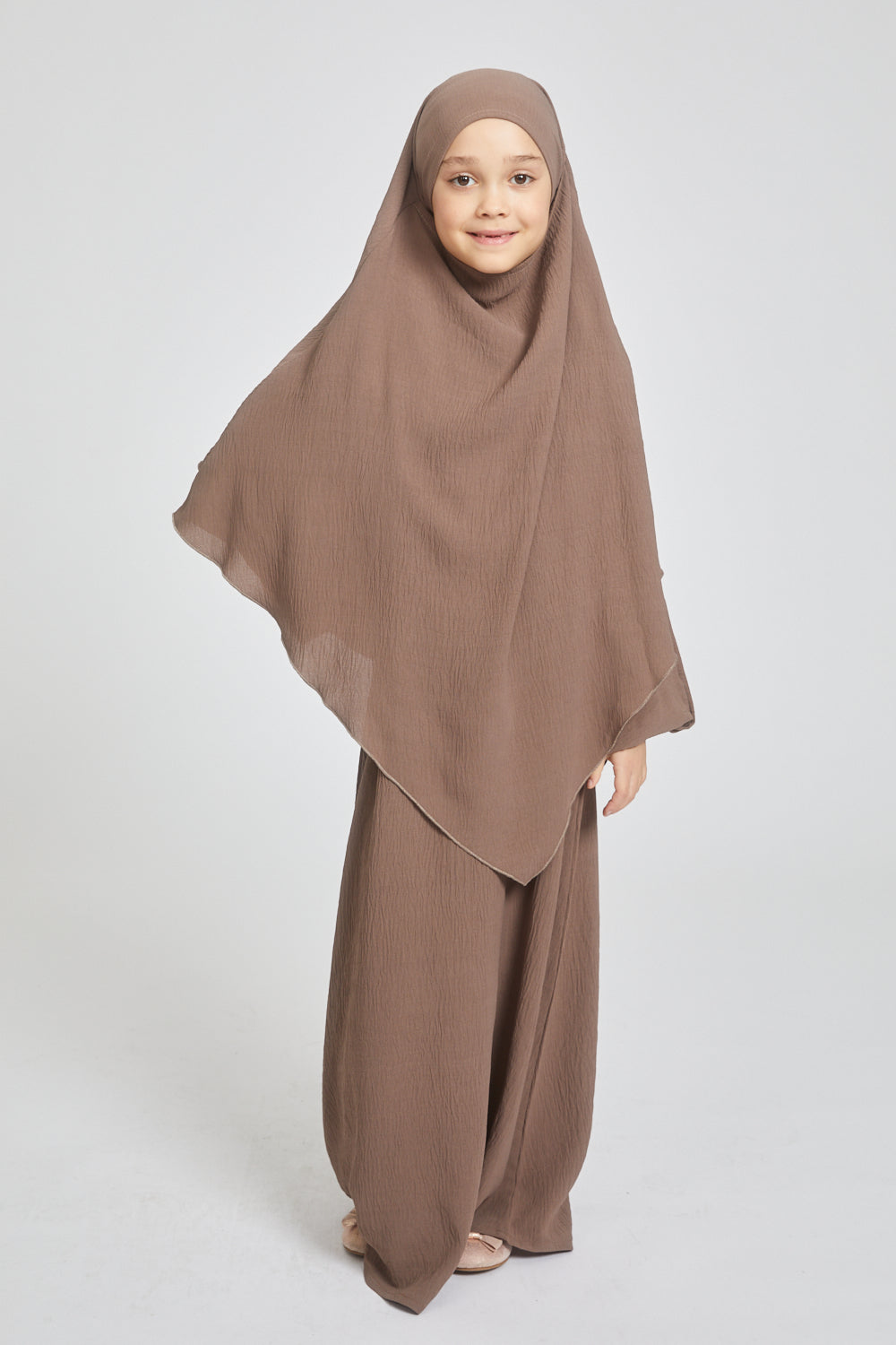 Junior Girls Abaya with Khimar Set – Smokey Taupe