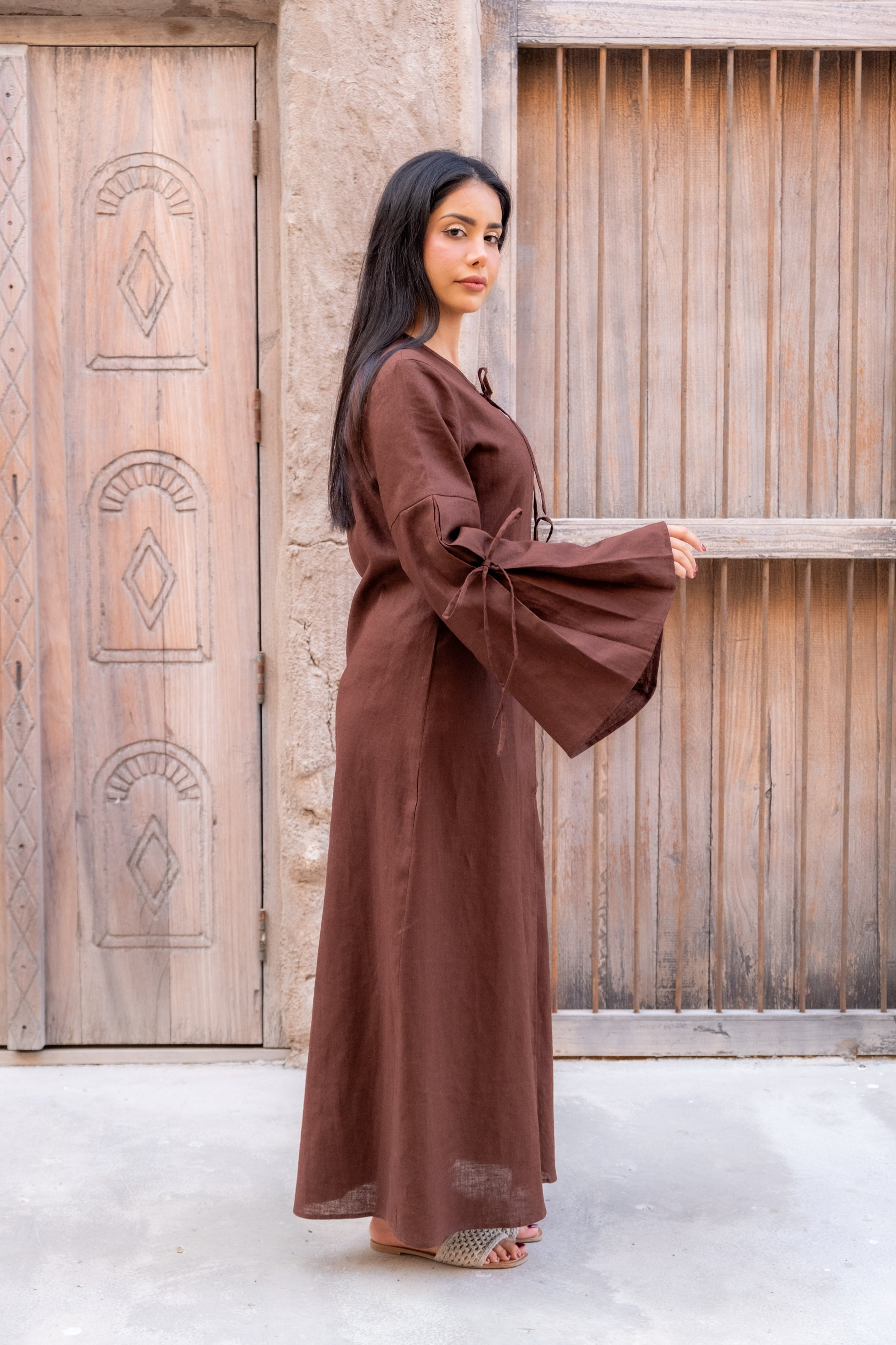 Made from 80% premium fabric and 20% cotton, our abayas are designed exclusively for YOU — combining natural comfort with refined elegance. The slightly fitted cut with flared sleeves and an asymmetric tie closure reflects a modern take on authentic Arabic style. Thoughtfully crafted, effortlessly elegant — the quality speaks for itself.