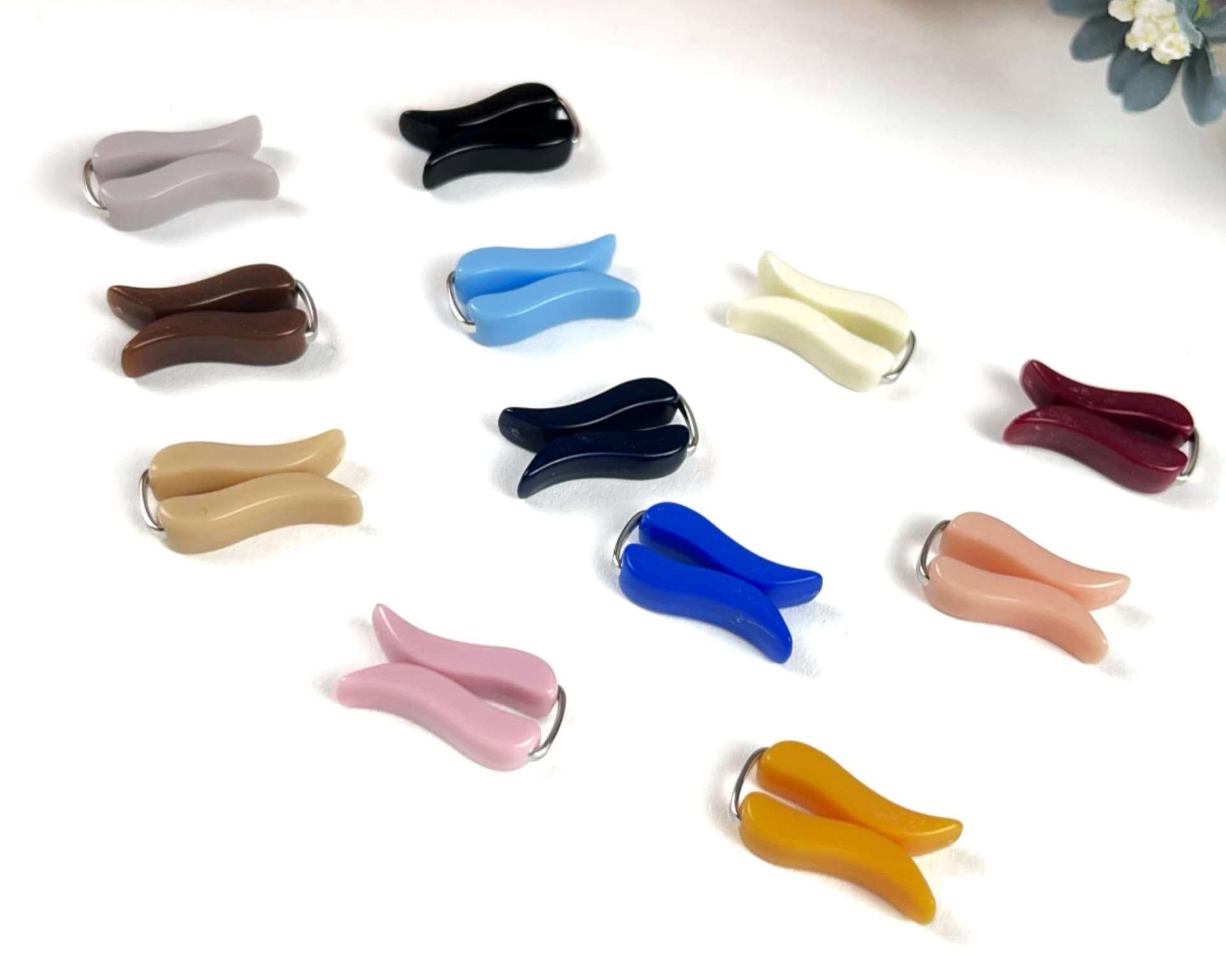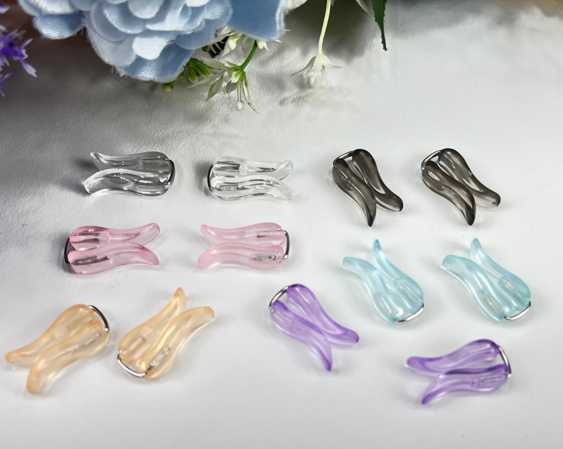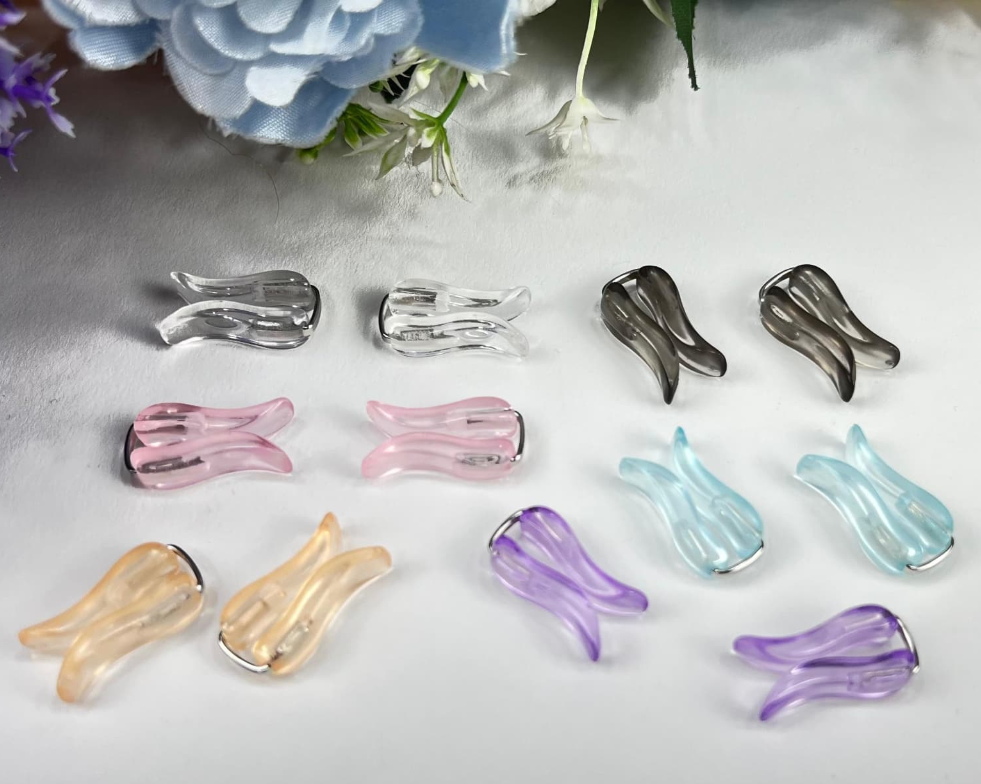 A set of 4 pin-free hijab clips designed to protect your hijabs from damage while providing a strong, gentle hold for all-day wear.