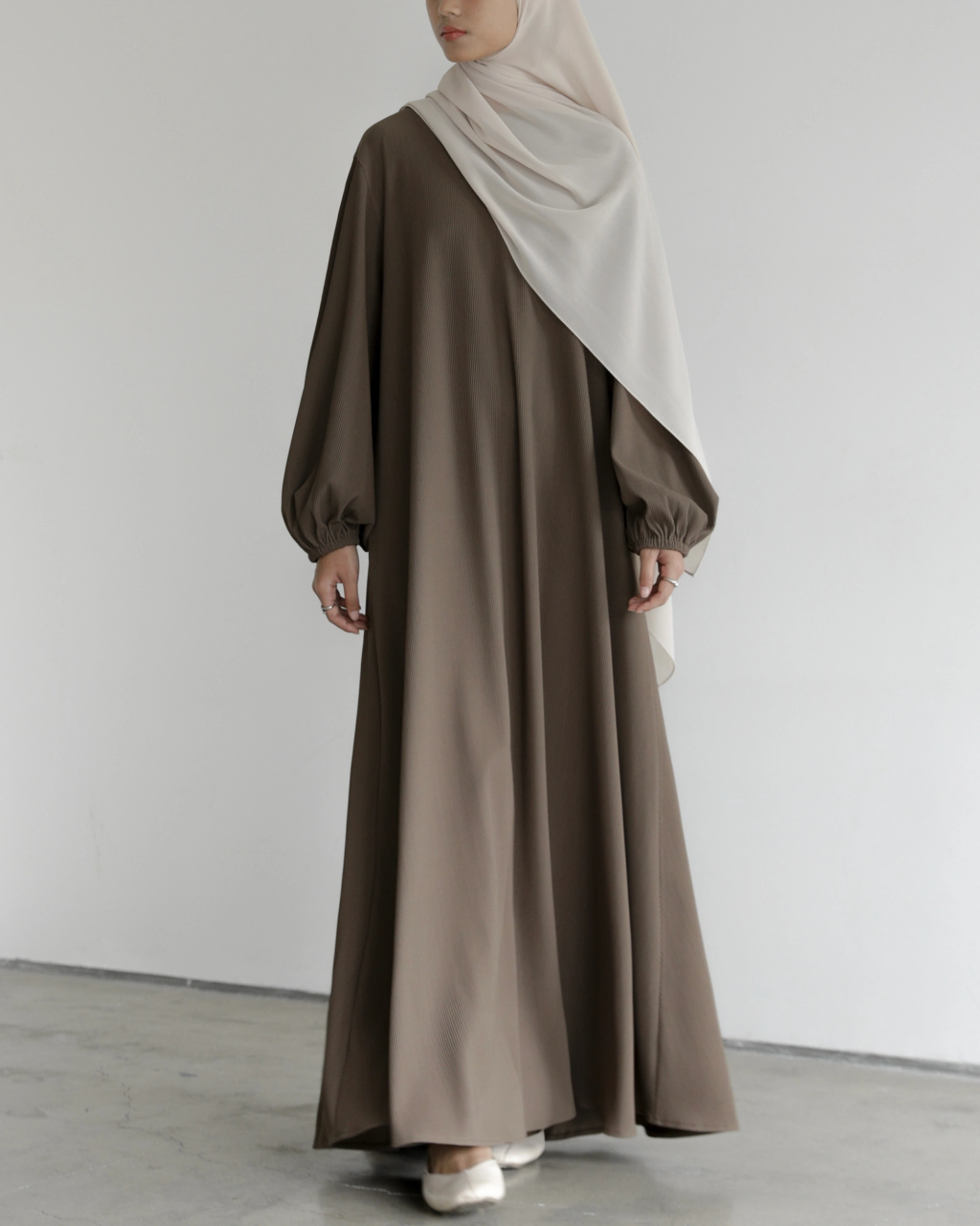 The Beige Umbrella Cut Closed Abaya is the epitome of effortless elegance and contemporary style.