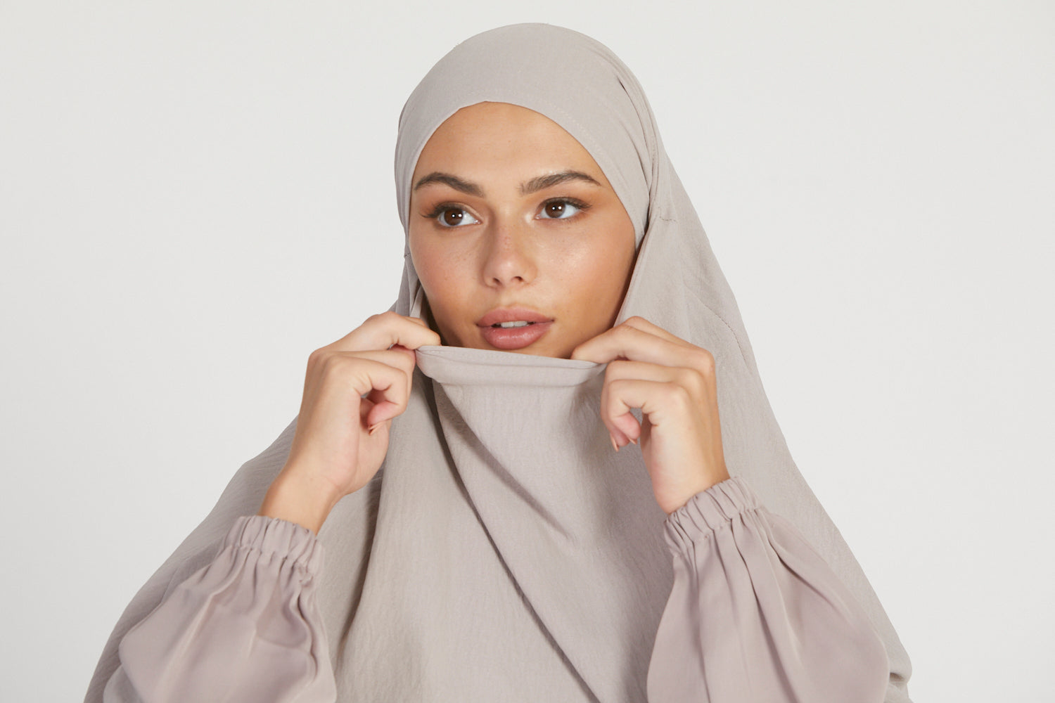 Shop our Three-Layer Chiffon Khimar — premium chiffon layers for elegant volume, soft comfort, and a romantic, face-framing design.