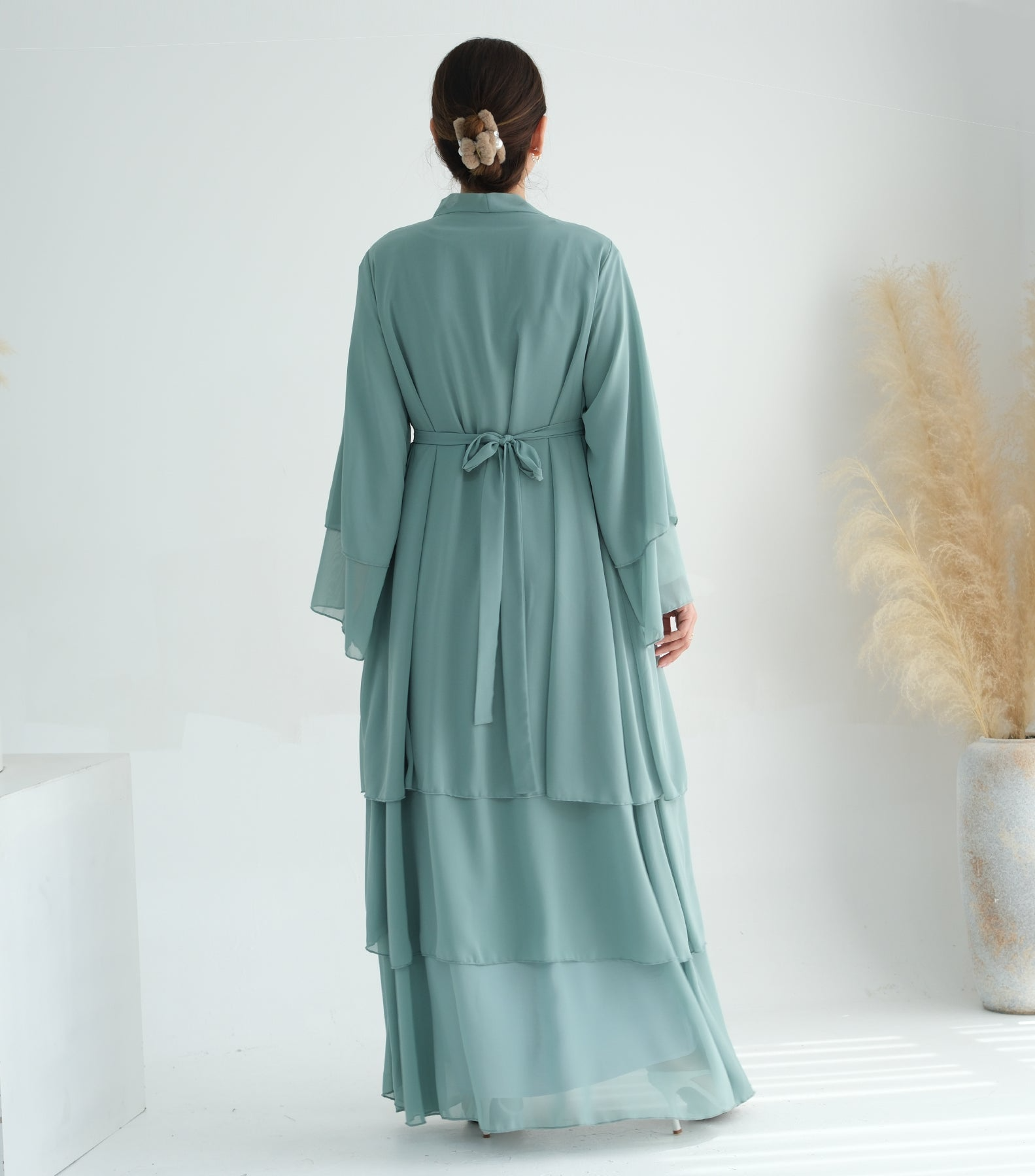 Noor Layered Hem Chiffon Open Abaya – Mint