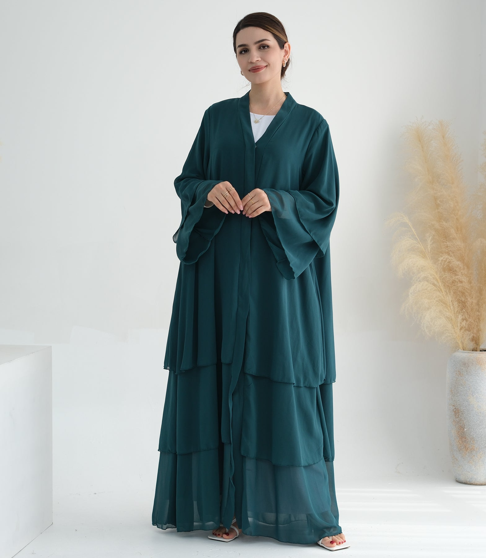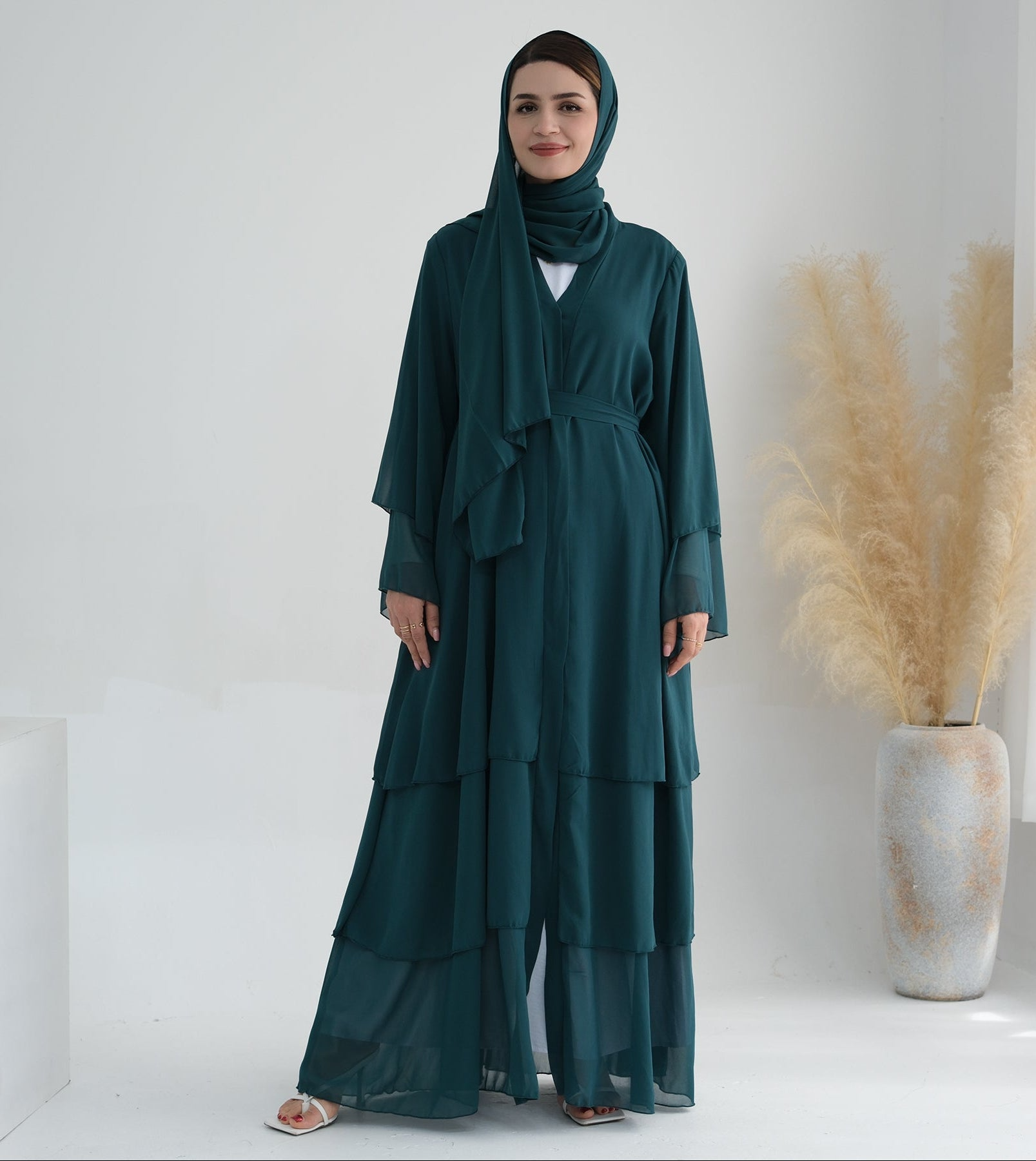 Noor Layered Hem Chiffon Open Abaya – Teal