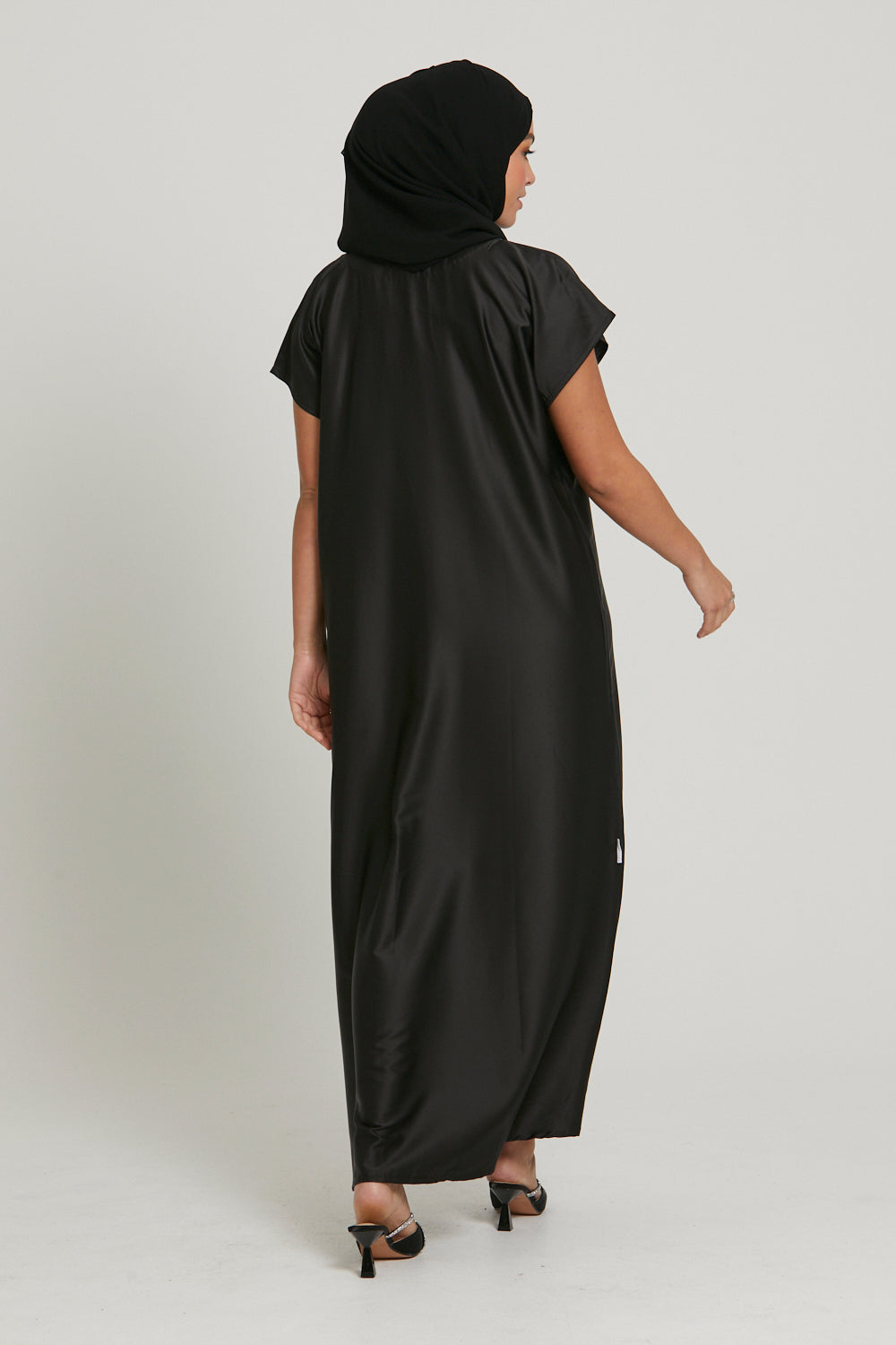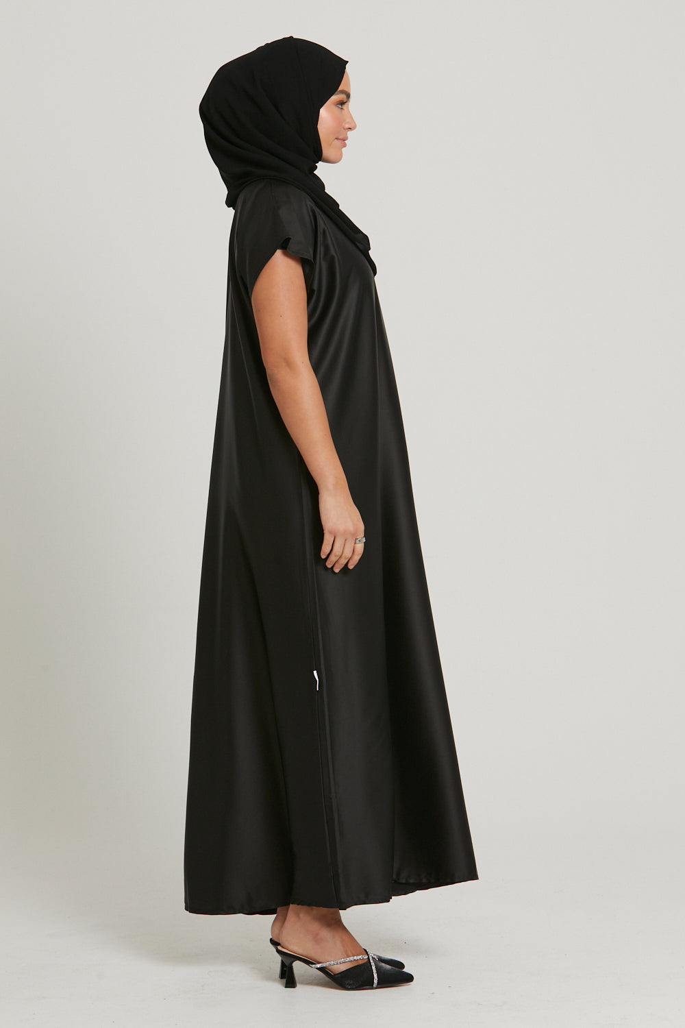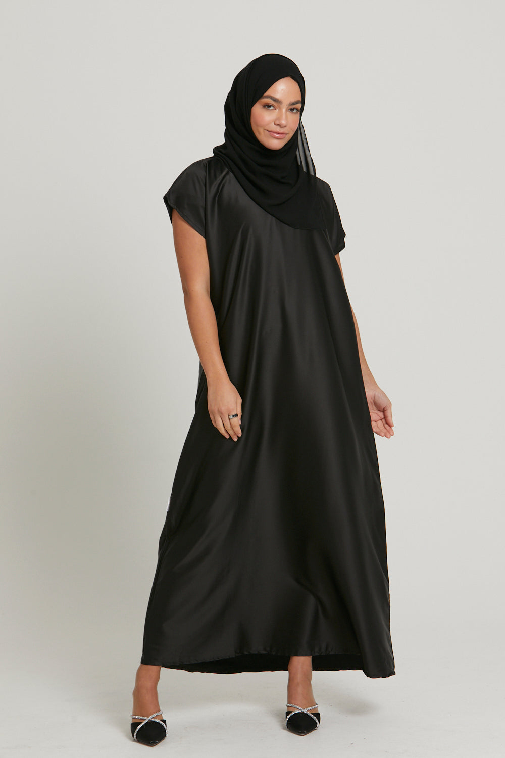 Get ready to elevate your everyday elegance with our Premium Satin Inner Slip Dress – the perfect base layer for open abayas or standalone styling. Crafted from soft, luxurious satin, it features a flattering V neckline and capped sleeves for a refined yet comfortable fit.