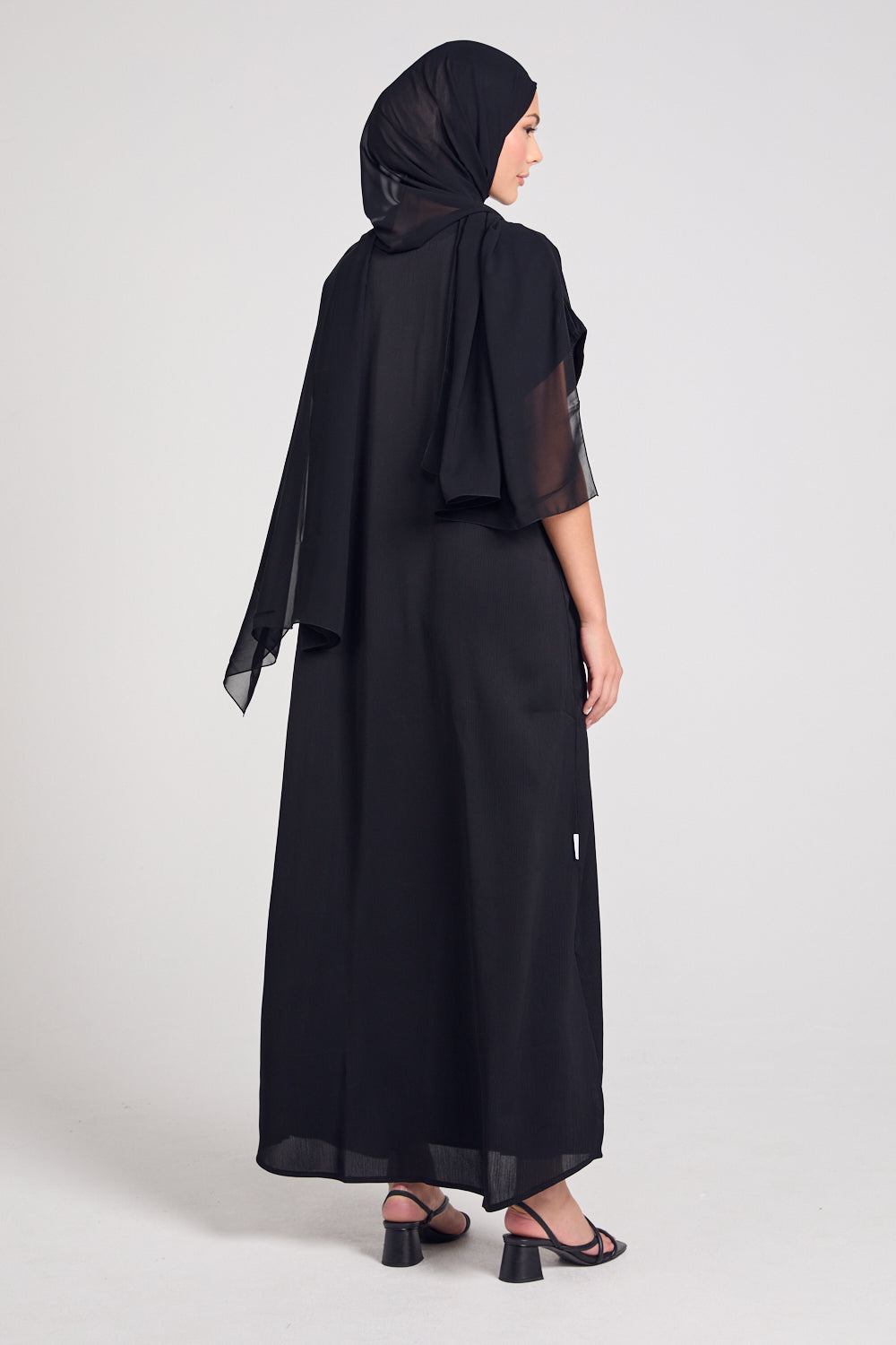 The abaya’s back detailing is so elegant. Love the subtle design.