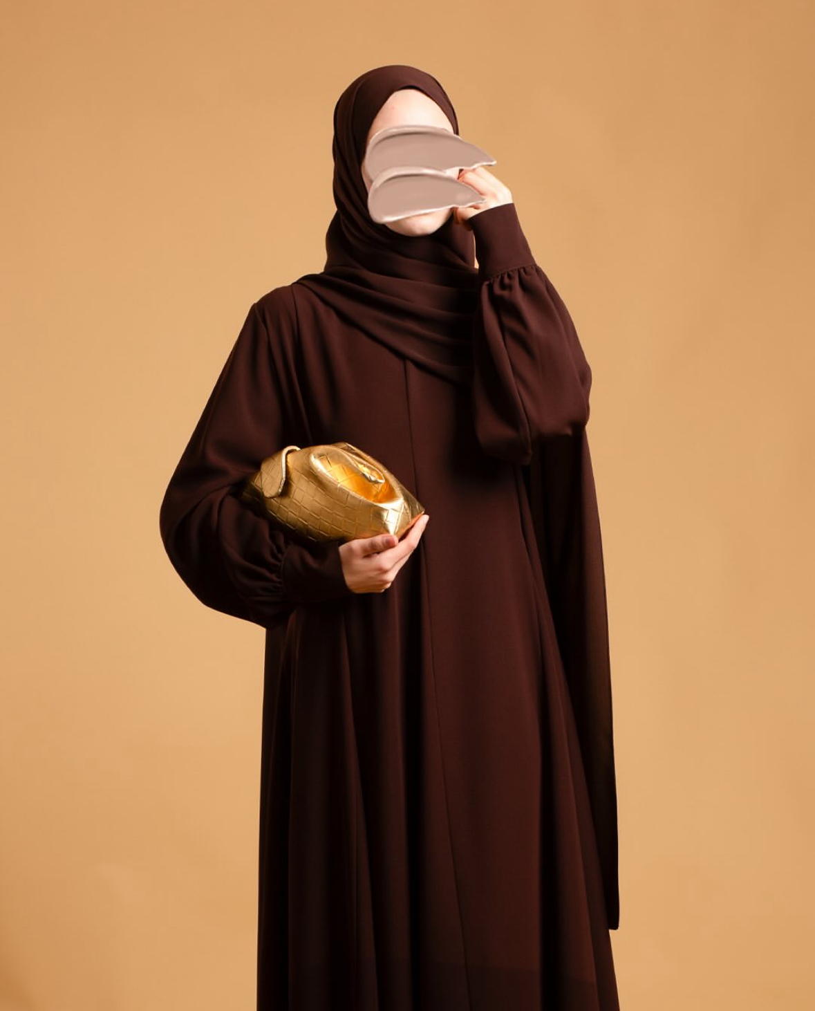 The Coffee Umbrella Cut Closed Abaya with elasticated cuffs is the latest addition to this season’s collection of essential abayas.