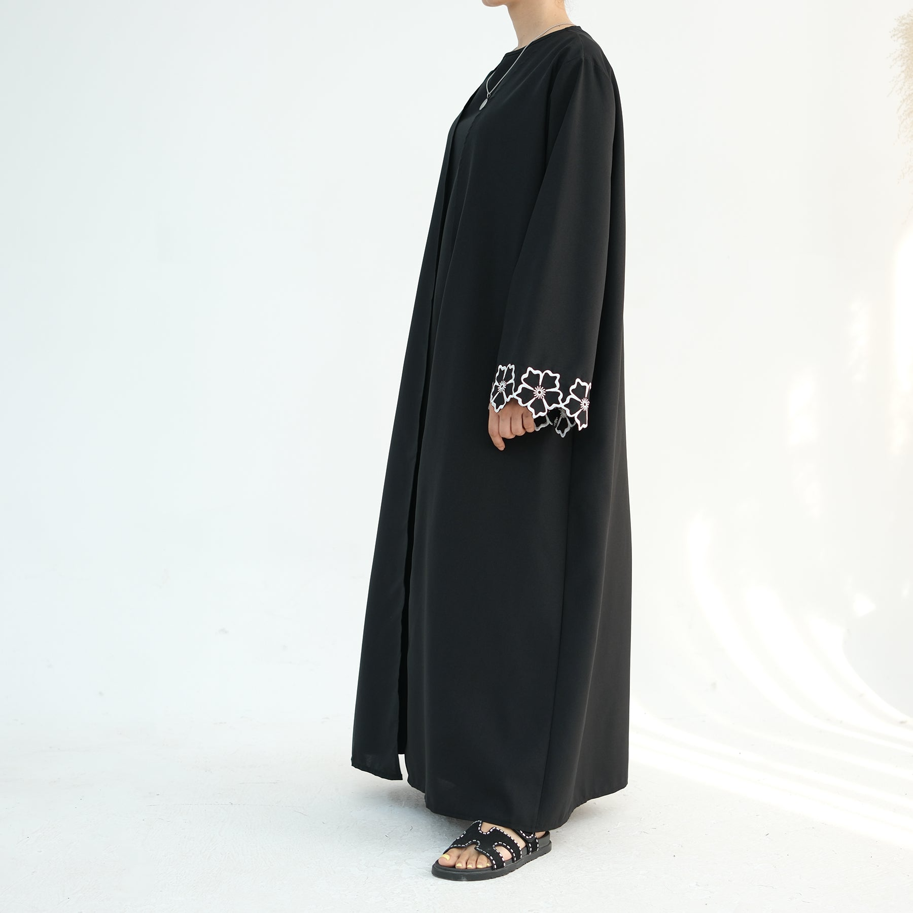 The abaya’s flared sleeves are so graceful. Perfect for events.