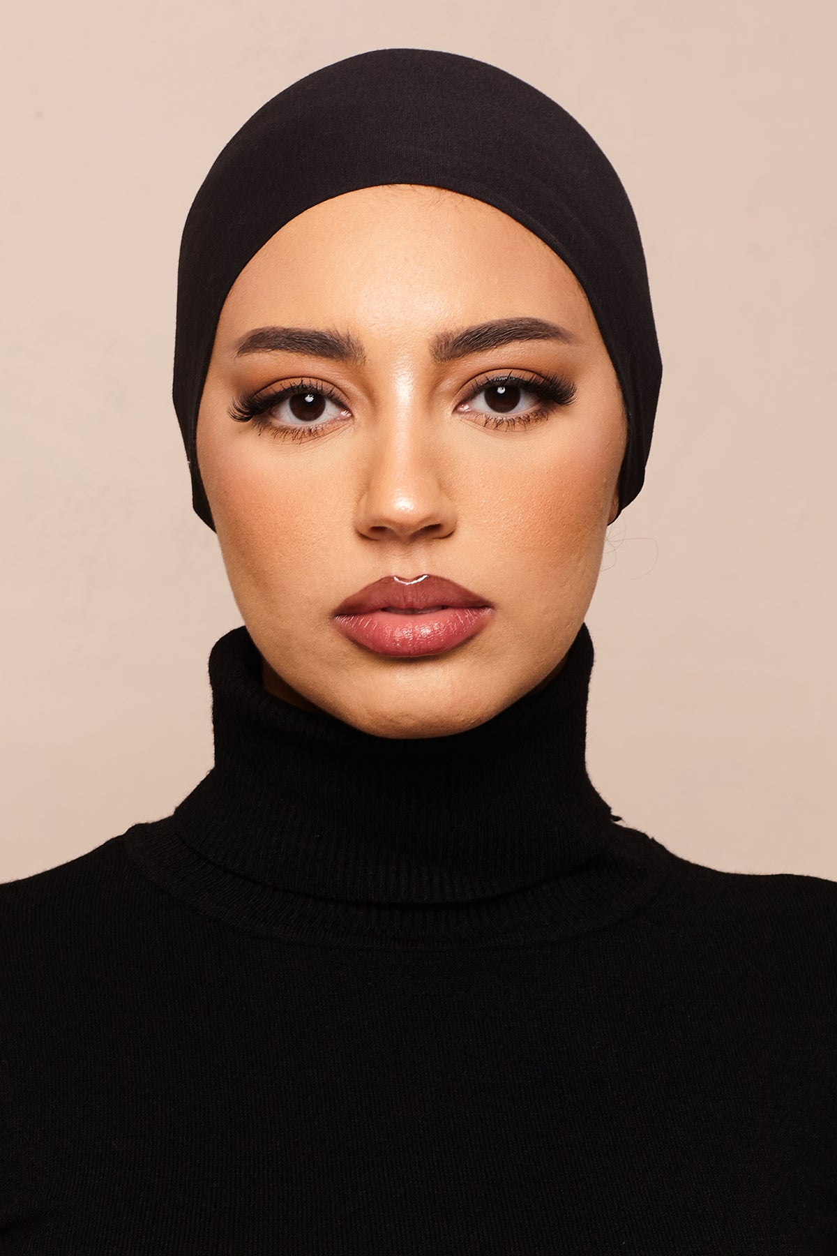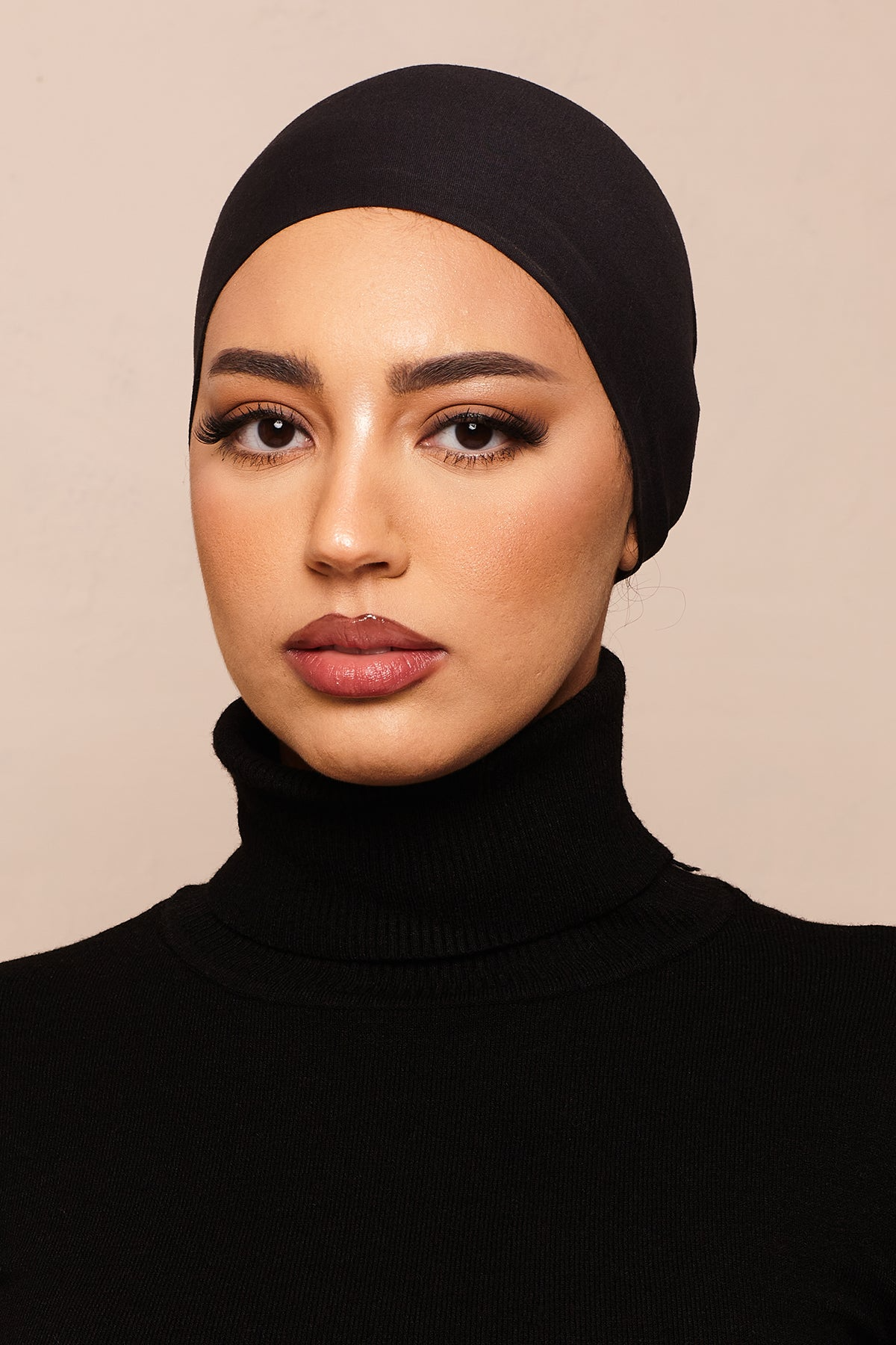 A soft, lightweight, and non-slip hijab cap in a versatile nude, made from naturally moisture-wicking and UV-resistant bamboo jersey for ultimate comfort and security.