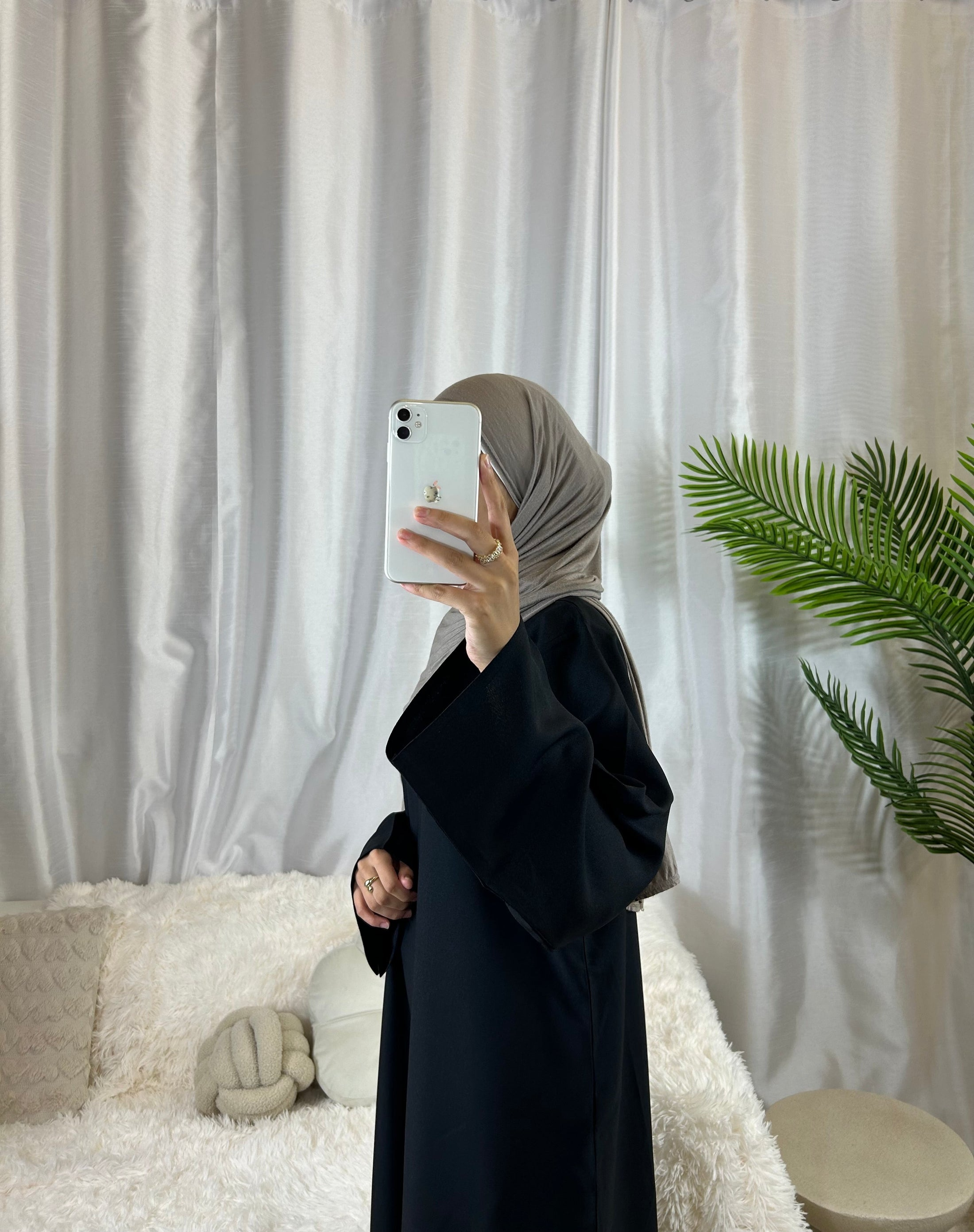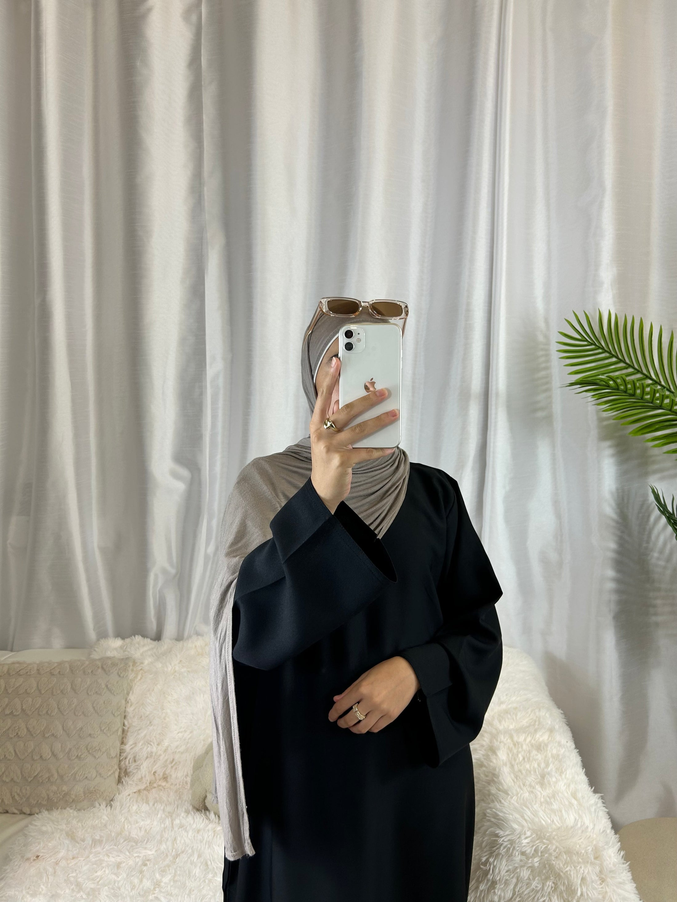 This minimalist abaya features a sophisticated round neck and a relaxed, loose fit for all-day comfort. Designed with functionality in mind, it includes deep, roomy pockets on both sides, offering a convenient space for your essentials. The Lina Abaya also comes with a matching chiffon hijab, providing a perfectly coordinated look.