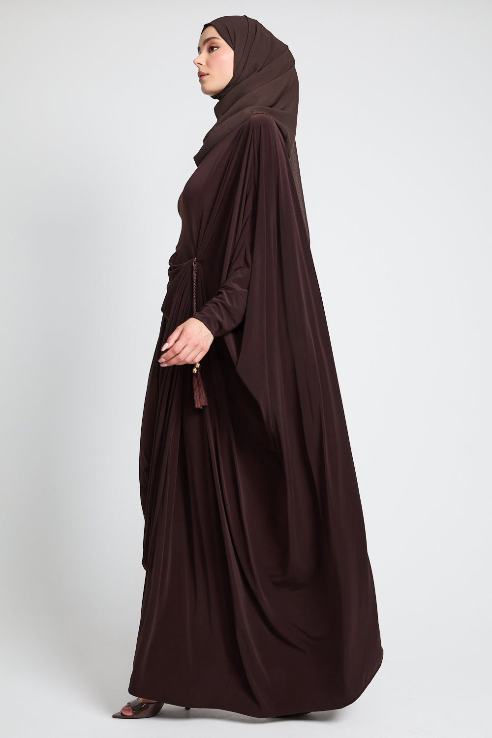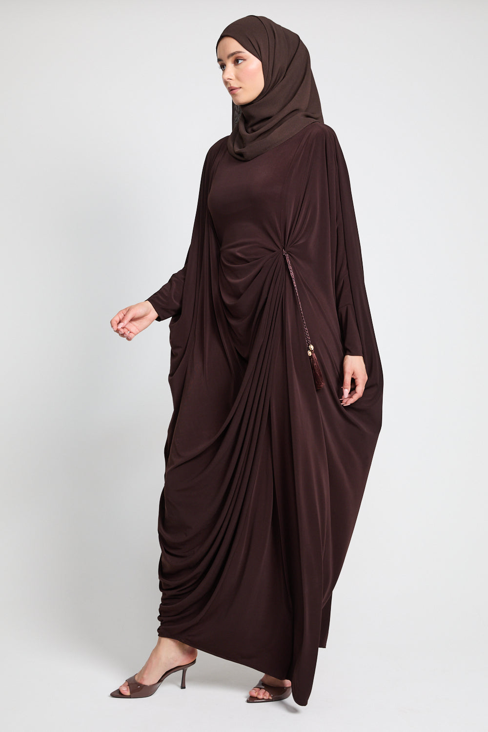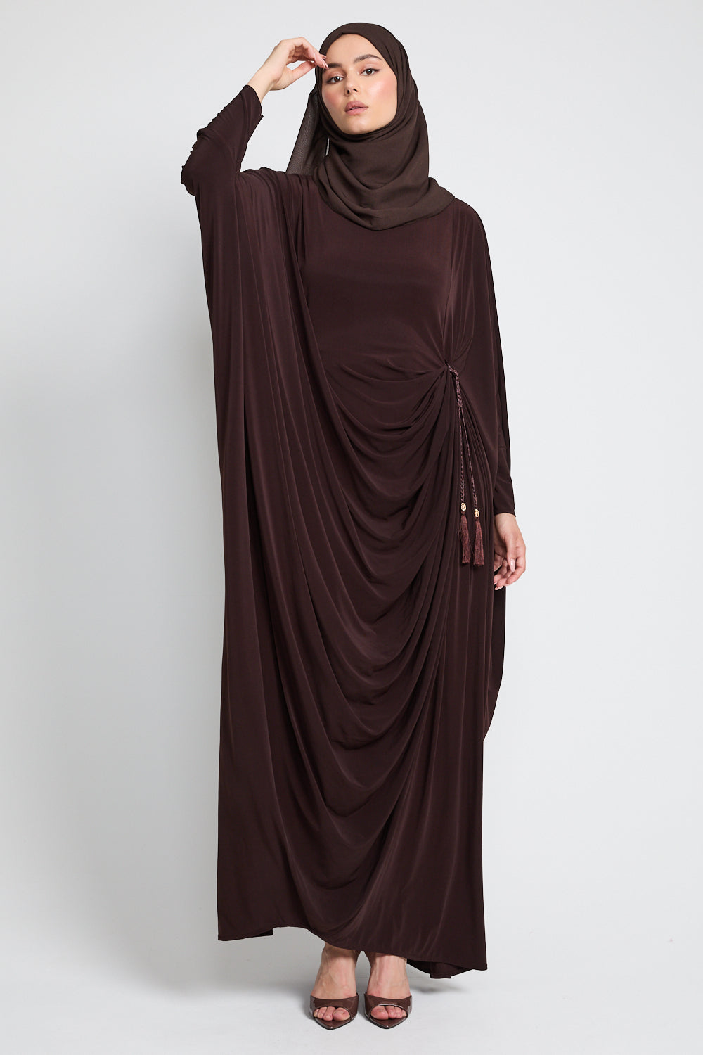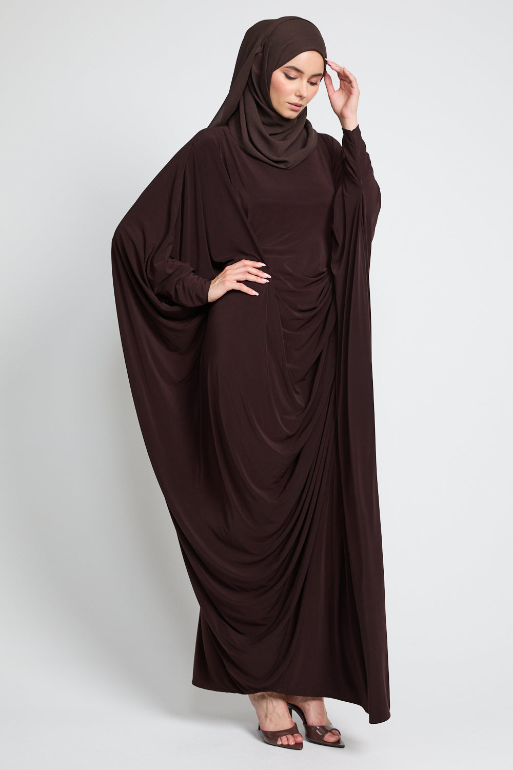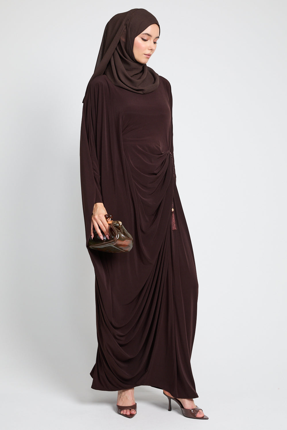 Elevate your modest wardrobe with The Luxe Draped Abaya, a perfect blend of elegance, comfort, and versatility. Tailored from premium-quality jersey fabric, it drapes beautifully and moves effortlessly with you, making it an ideal choice for daily wear or special gatherings.