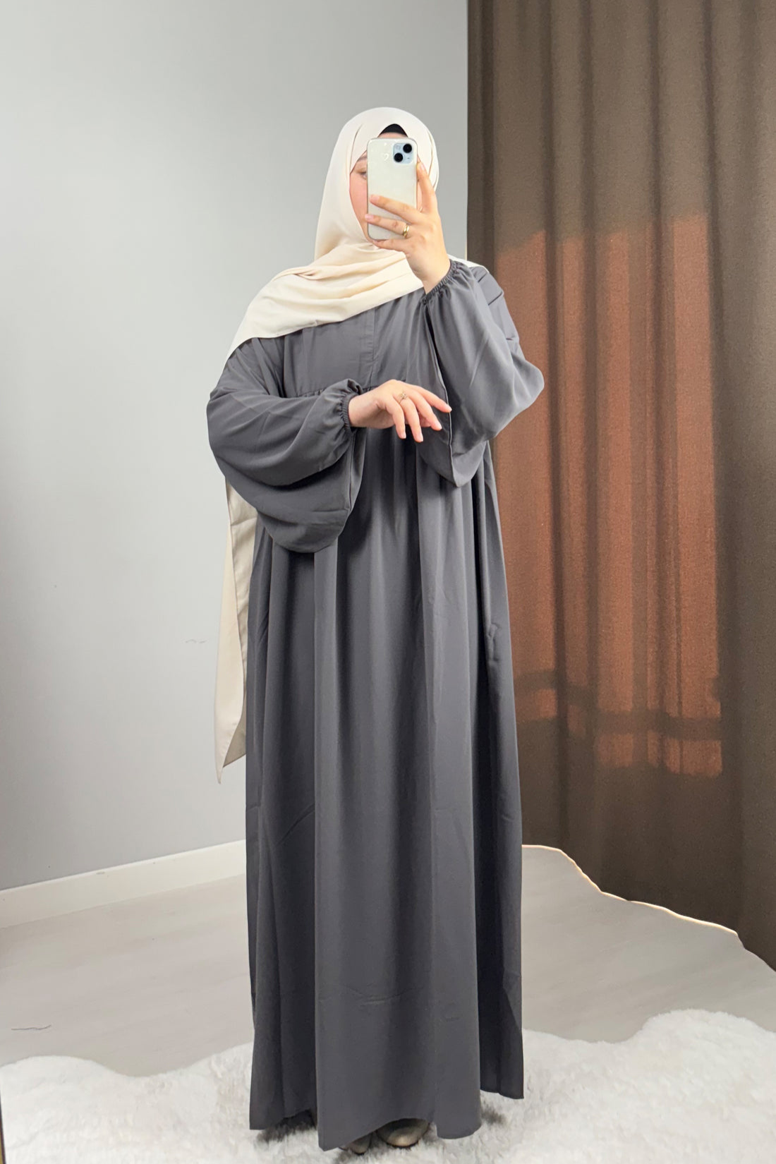 The Coffee Umbrella Cut Closed Abaya with elasticated cuffs is the latest addition to this season’s collection of essential abayas.