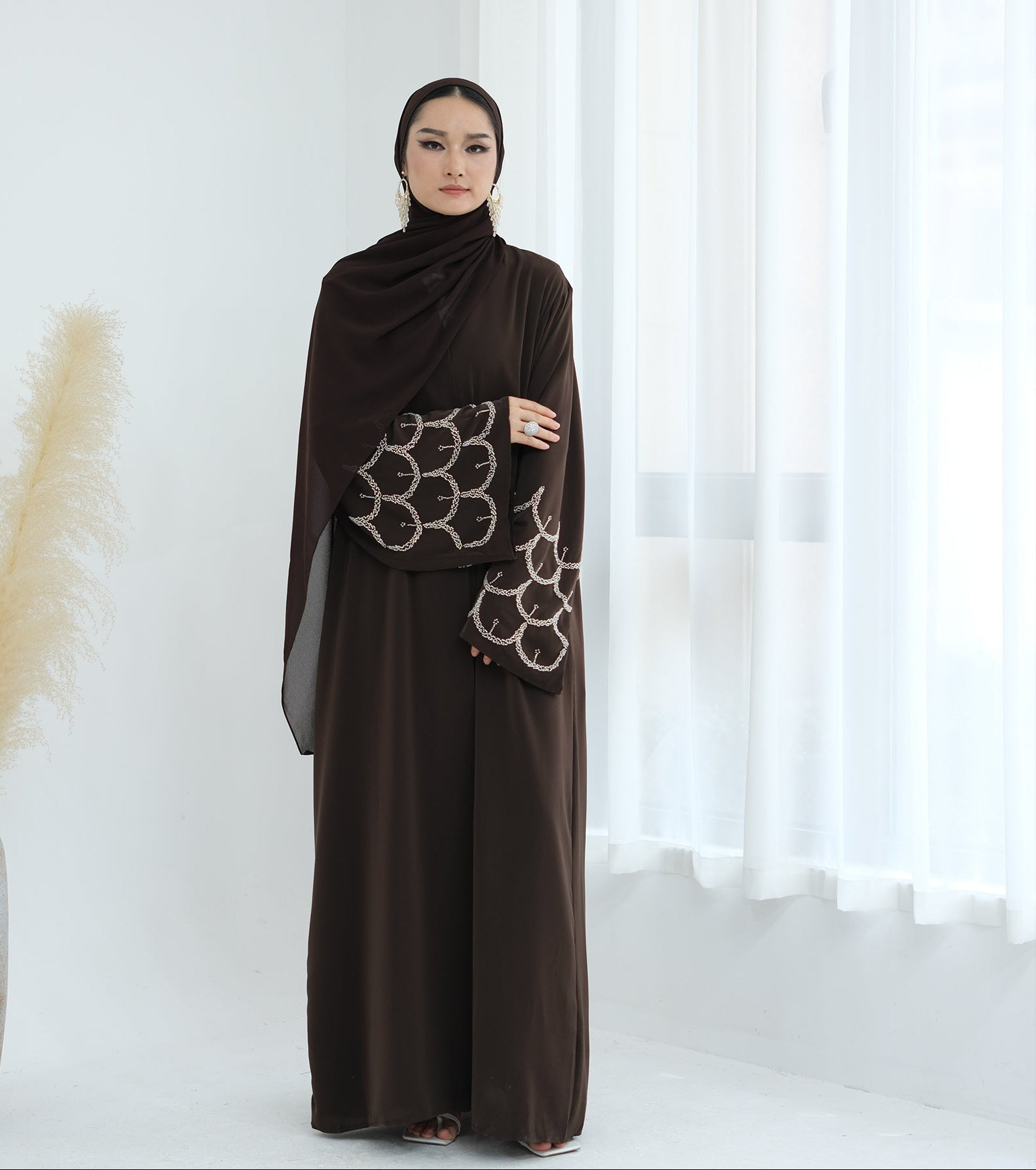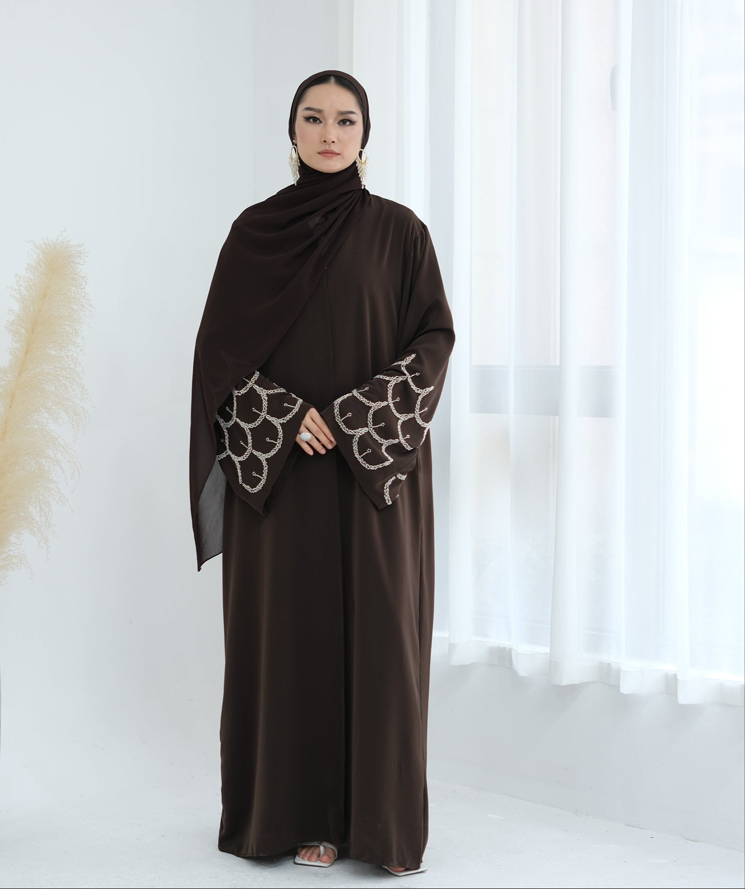The Coffee Umbrella Cut Closed Abaya with elasticated cuffs is the latest addition to this season’s collection of essential abayas.